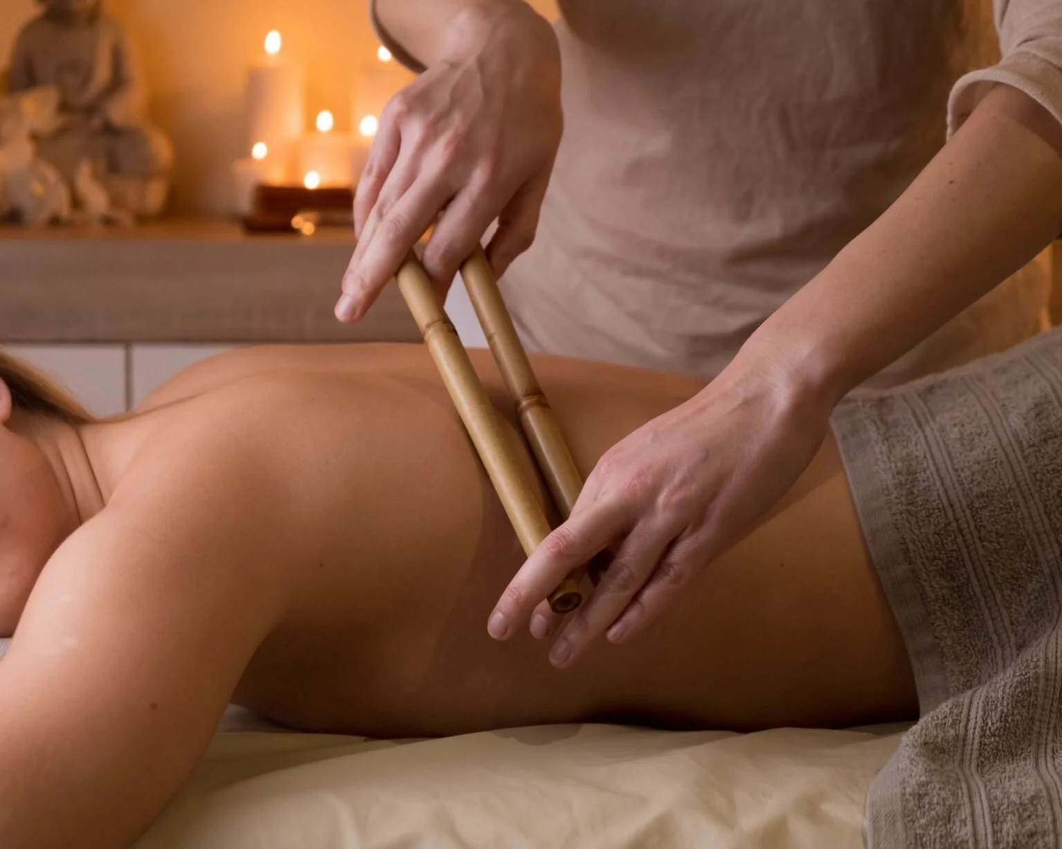 Ervaar de kracht van natuurlijke bamboestokken die spanning losmaken, de doorbloeding stimuleren en je lichaam nieuwe energie geven. Mijn bamboe massage combineert stevige, ritmische bewegingen met de helende warmte van bamboe om diepe ontspanning en verlichting te bieden. Perfect voor wie stress en spierpijn wil verminderen en zich weer licht en soepel wil voelen!